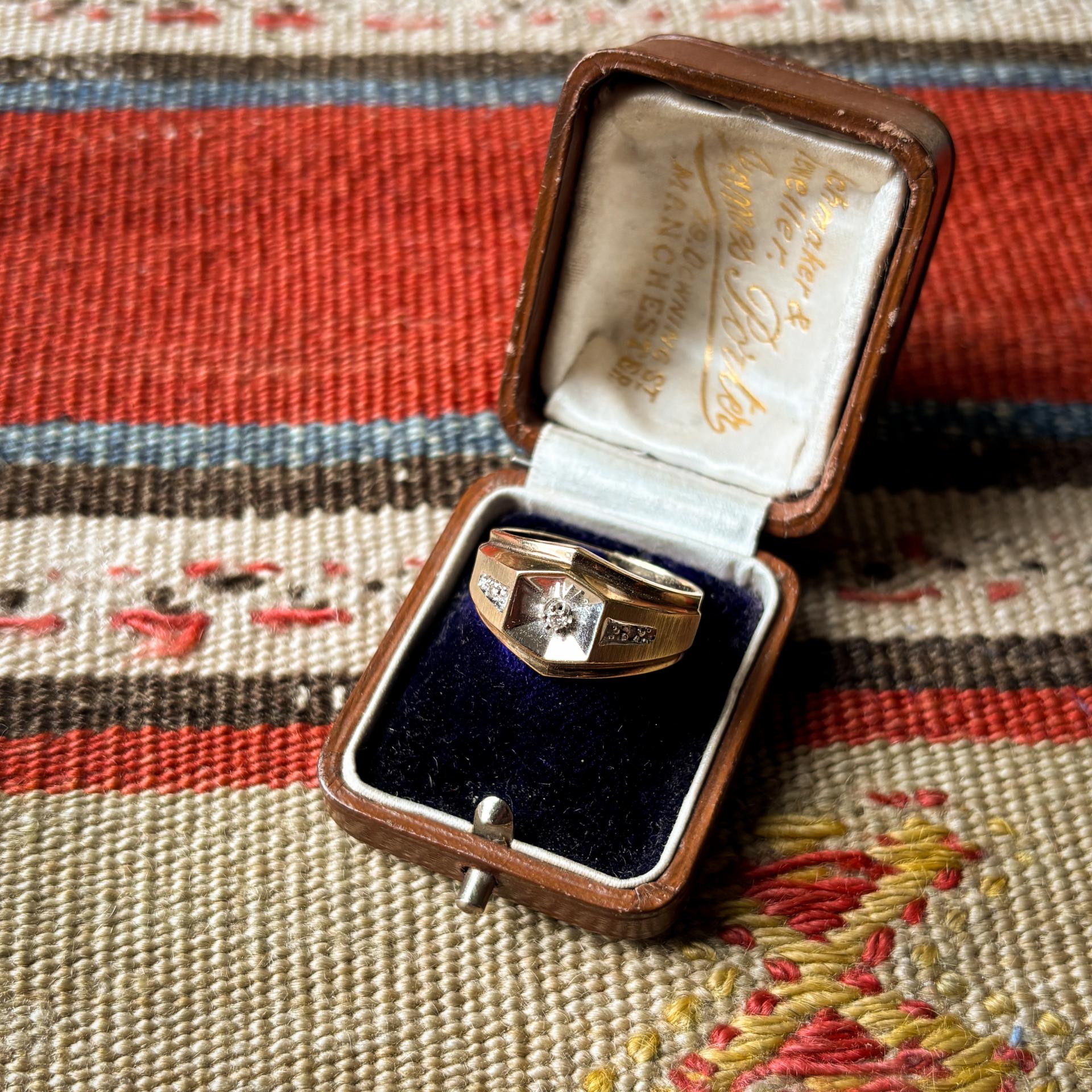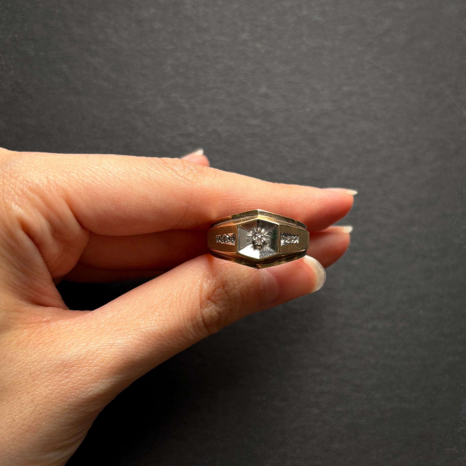 Diamond Yellow Gold Ring for Men, USA, 1960s