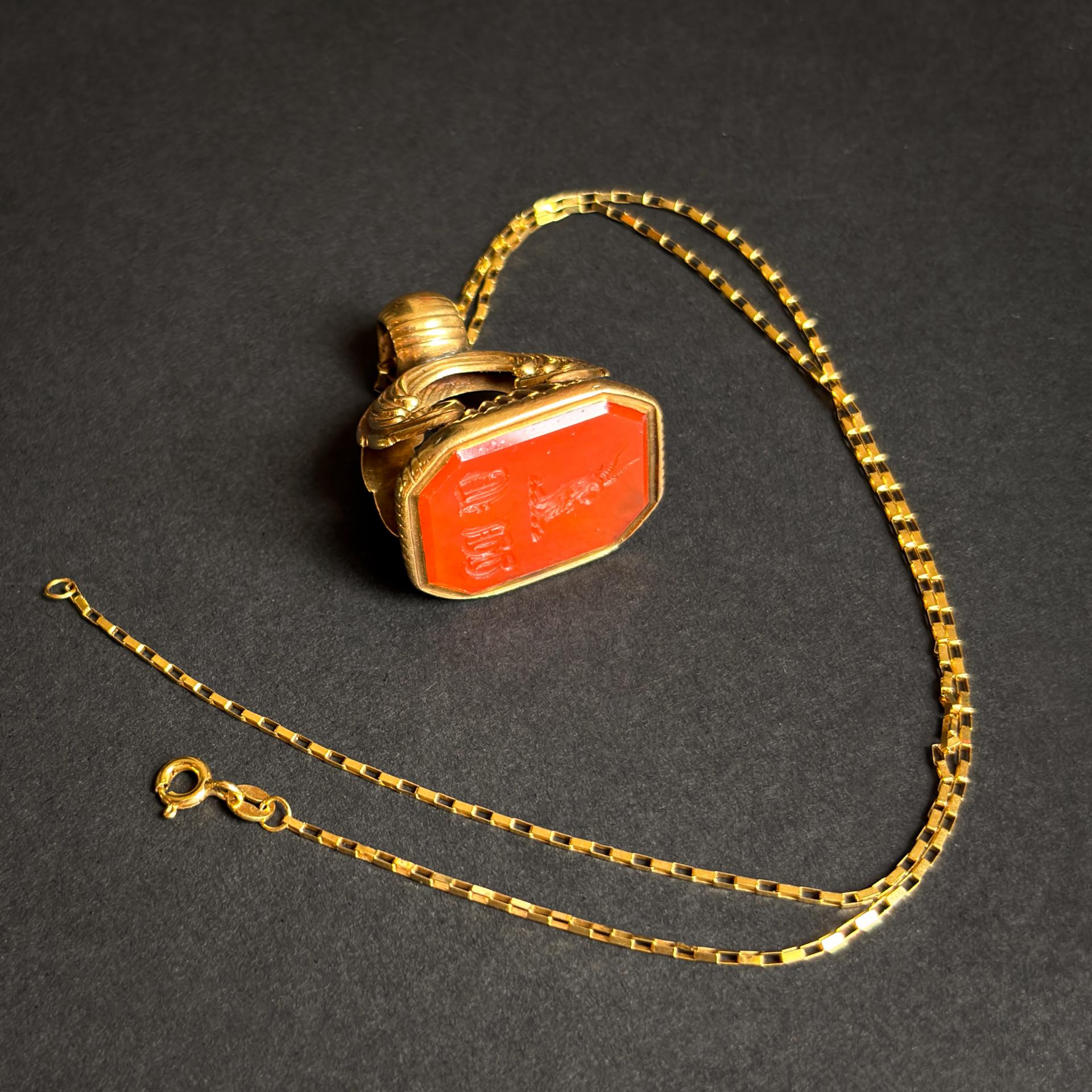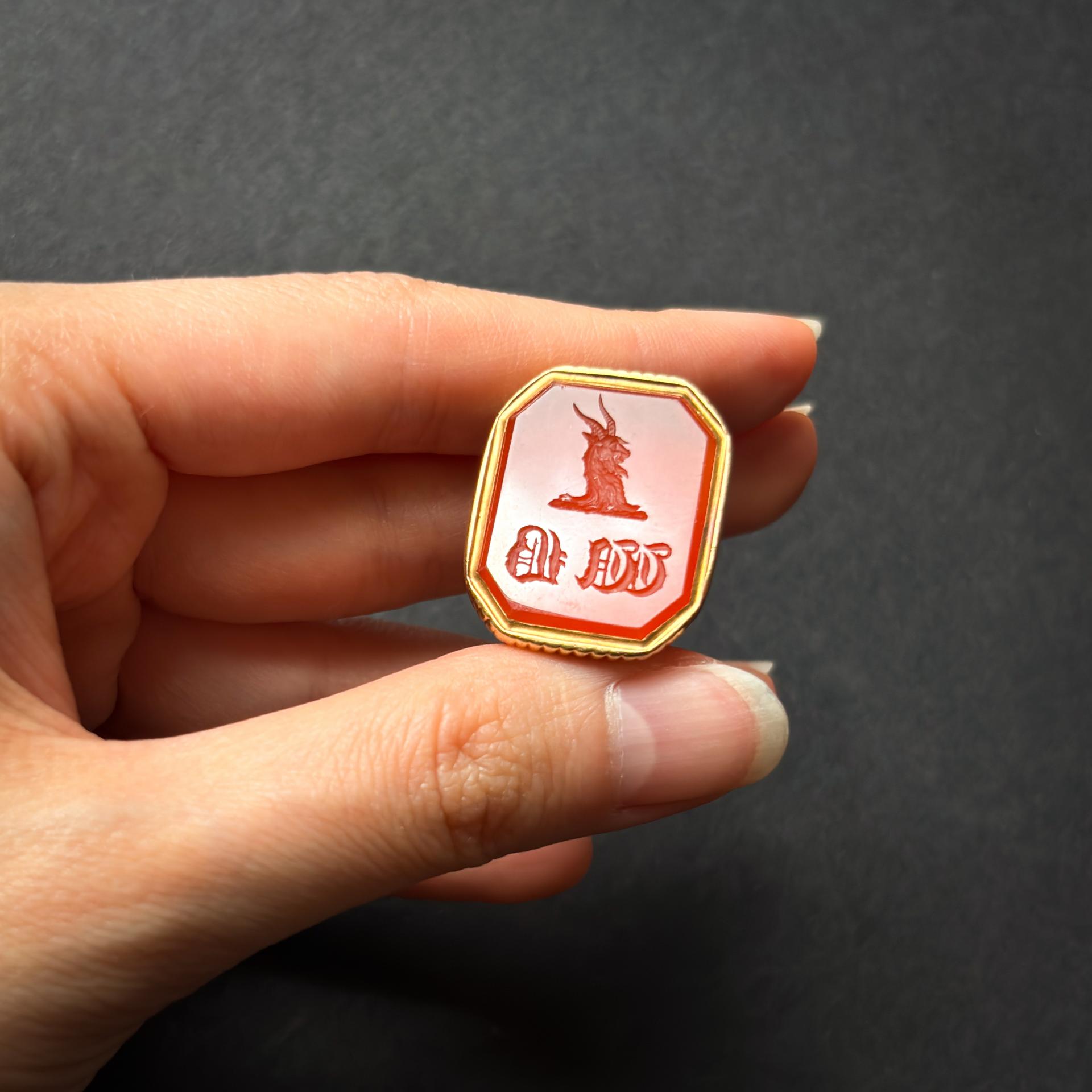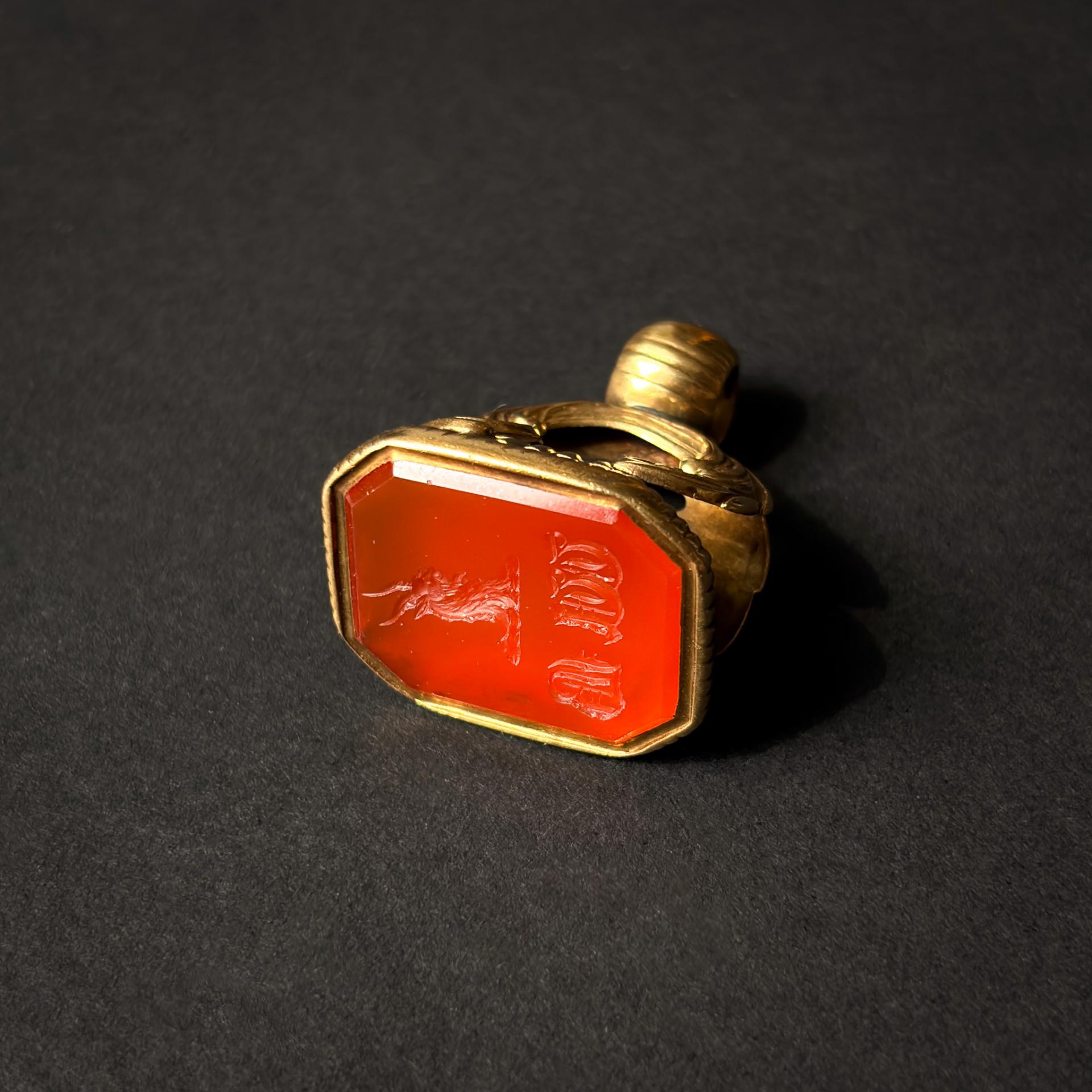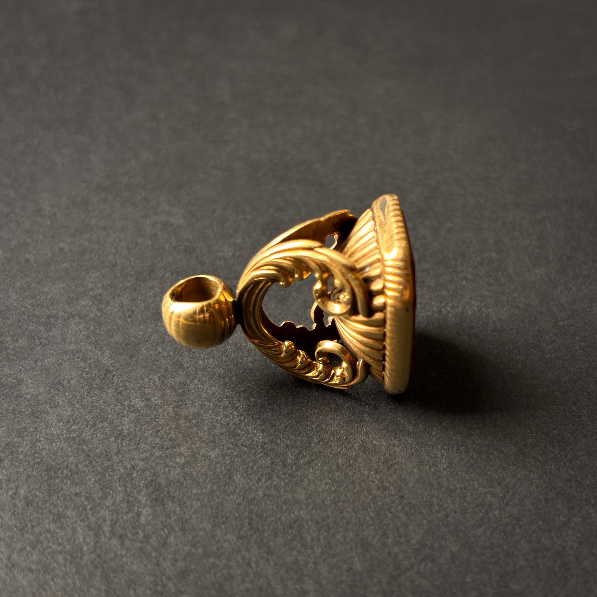 Antique Victorian Chalcedony Family Crest Fob Seal Charm, England, 1890s