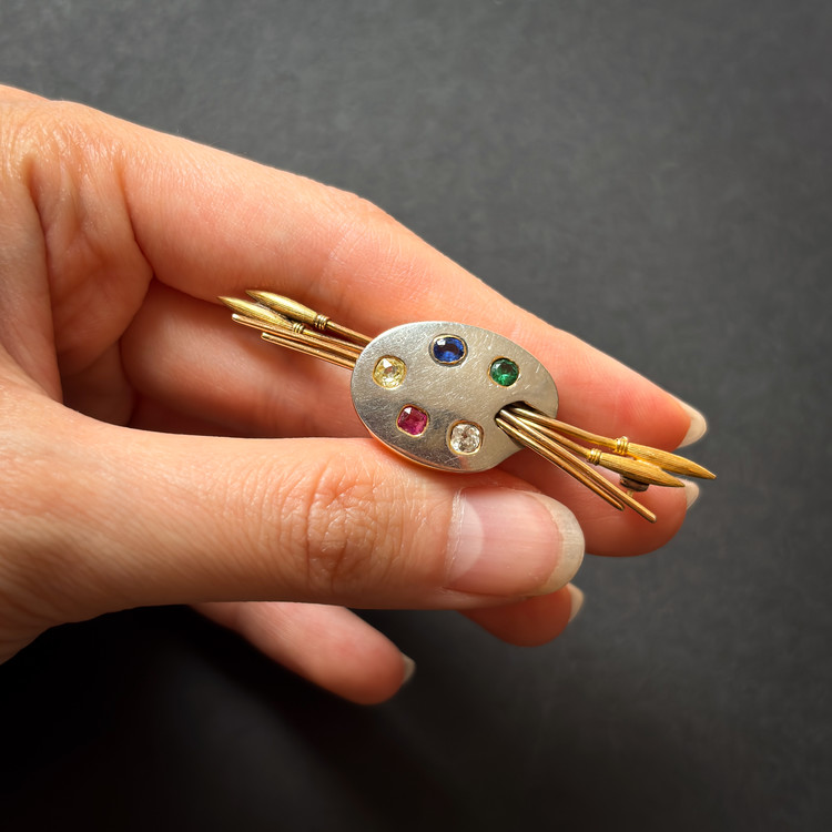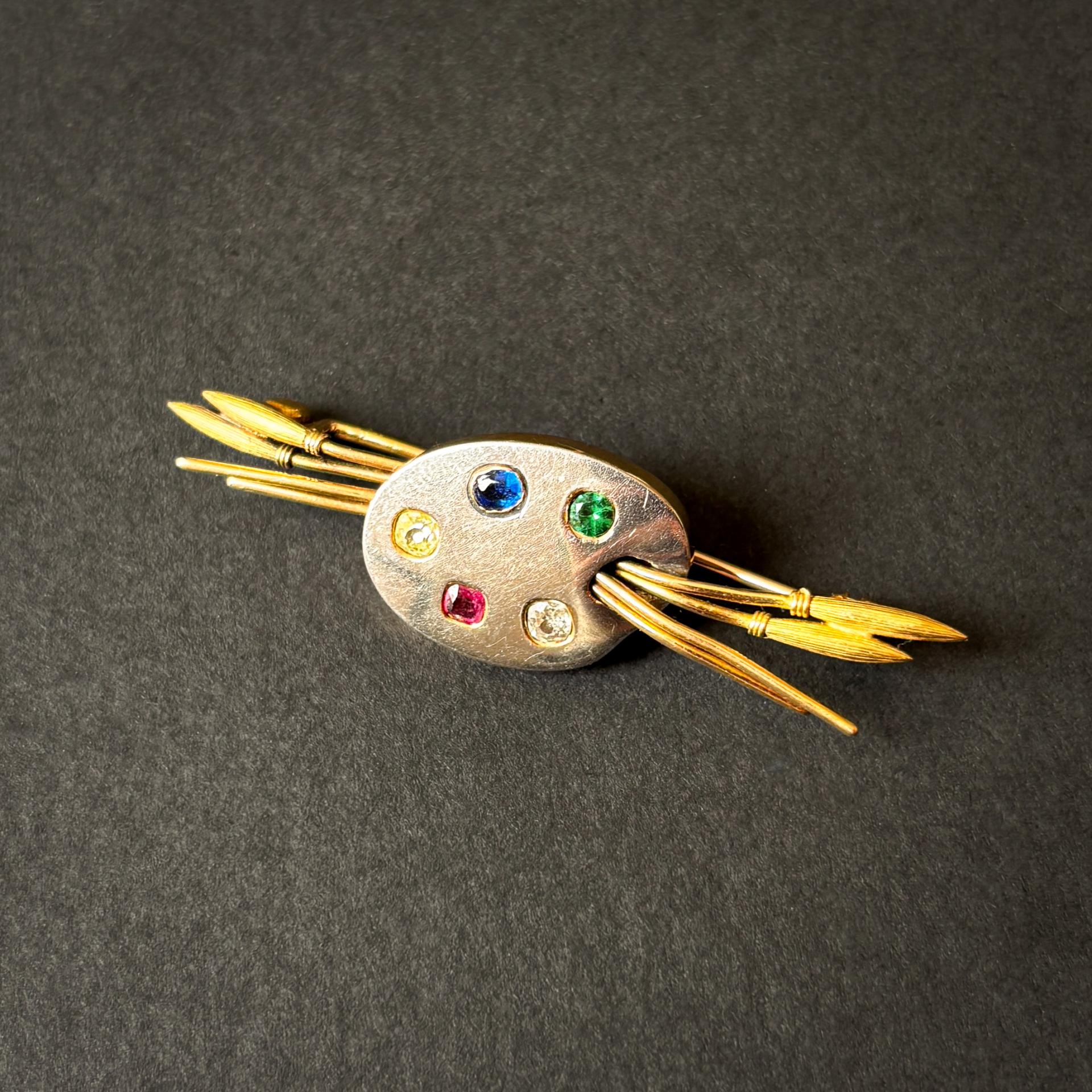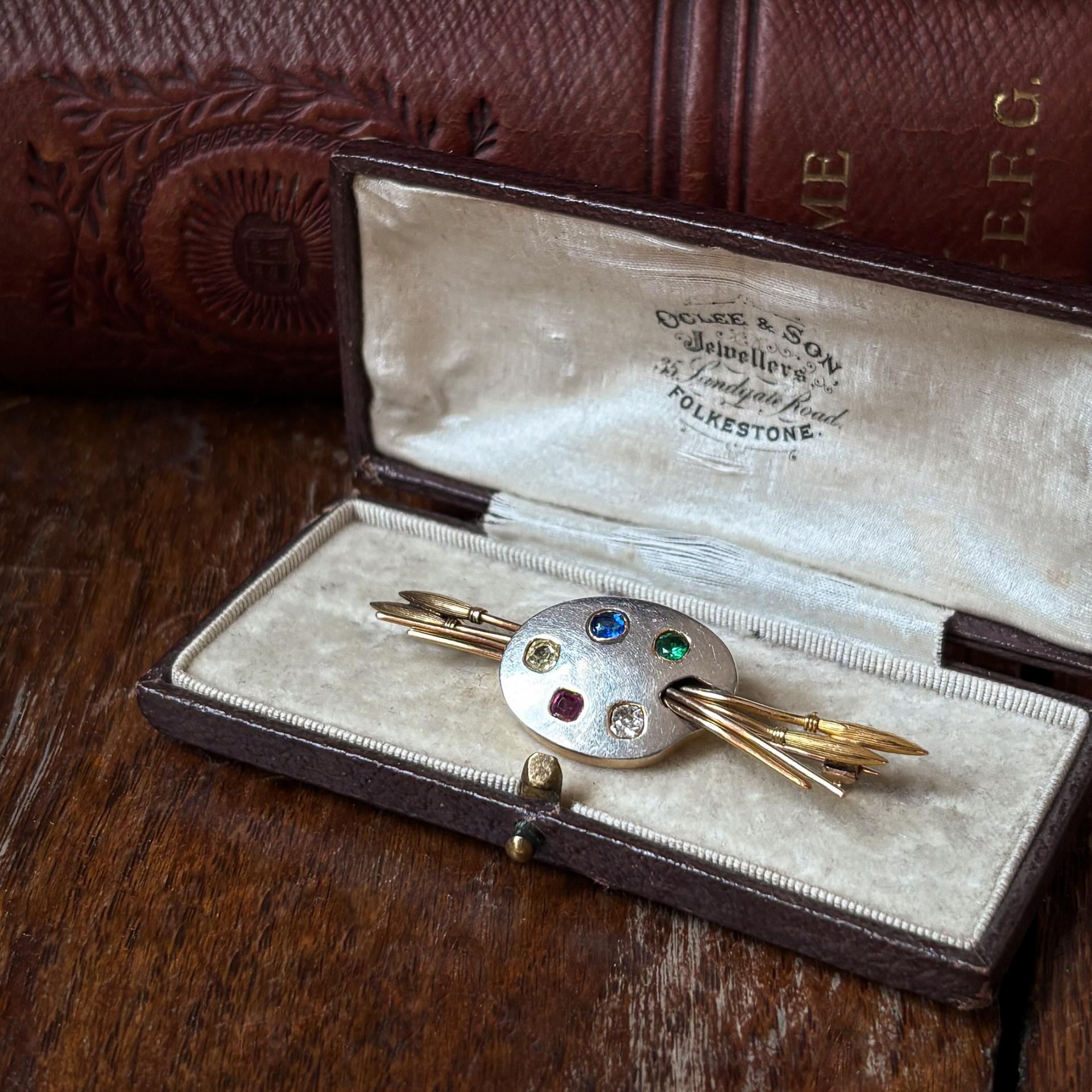 Antique Victorian Artist's Palette Brooch Pin, England, 1900s