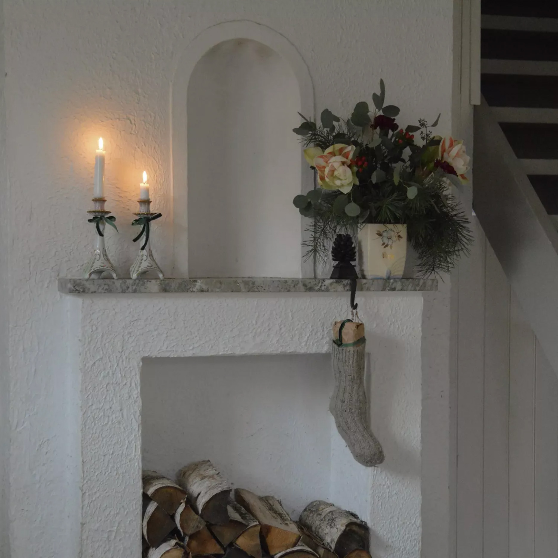 네덜란드에서 제작된 솔방울 모양의 오브제가 달린 크리스마스 스타킹 행거입니다. 벽난로 맨틀 또는 선반에 걸어 원하는 것을 걸 수 있습니다.