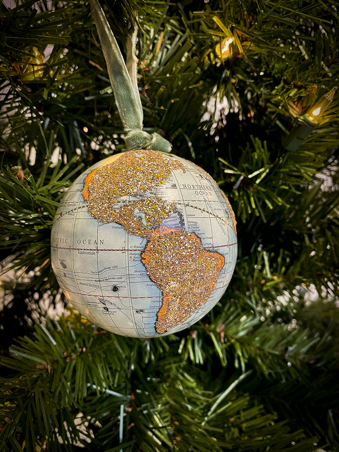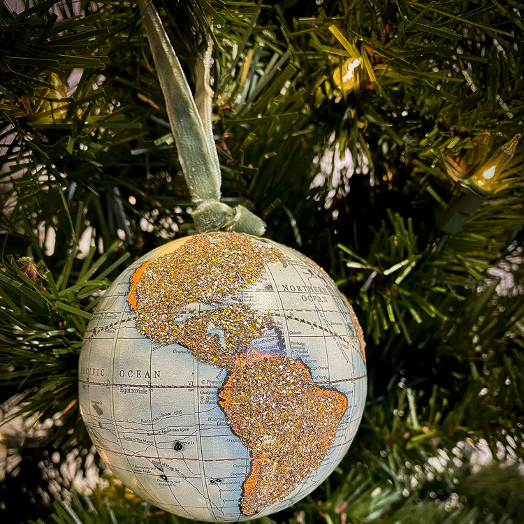 -글리터드로 표현된 대륙의 앤틱 지구본 디자인